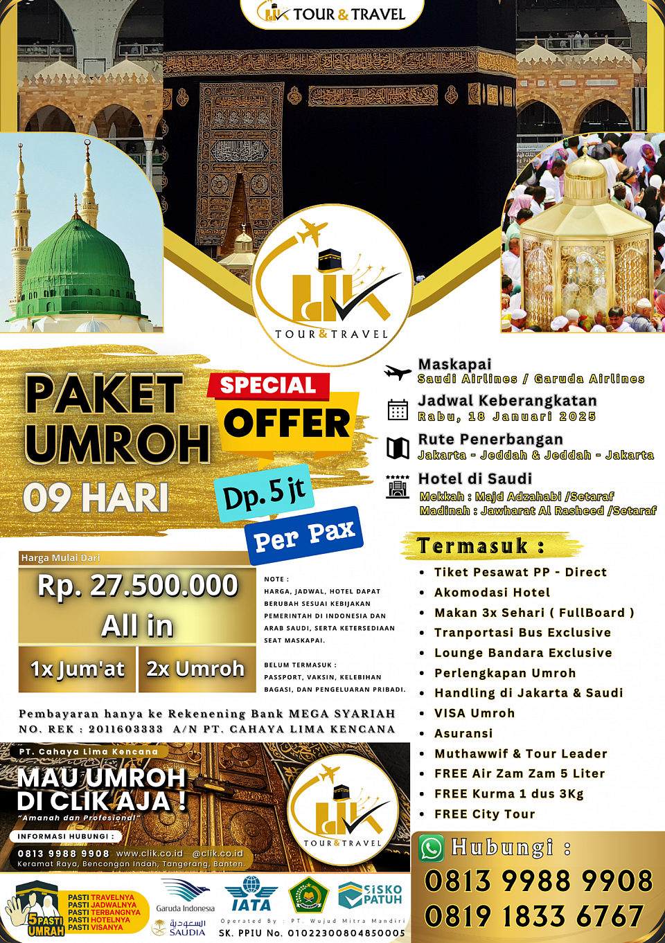 Paket Umroh Murah Januari 2025 - Clik Travel - PT. Cahaya Lima Kencana